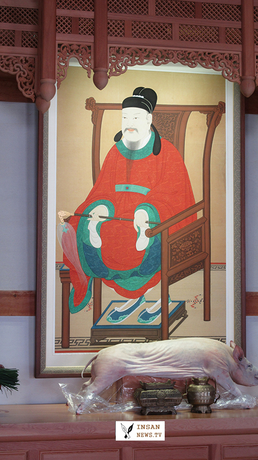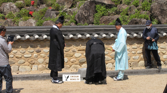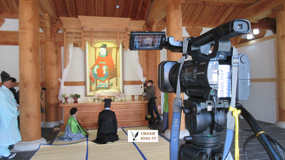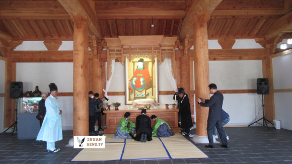 고운선생의 초상화를 열고 관수세수후 강신례, 참신례, 헌작하고