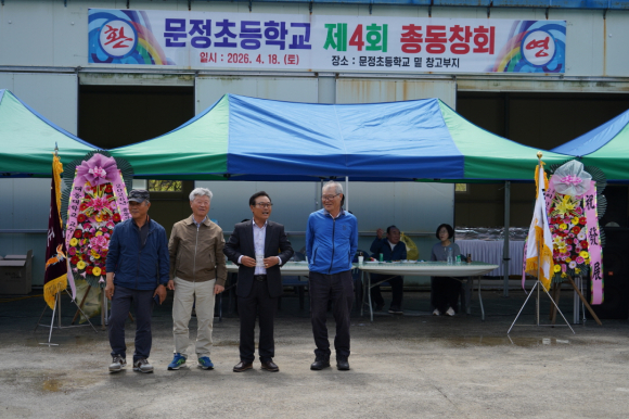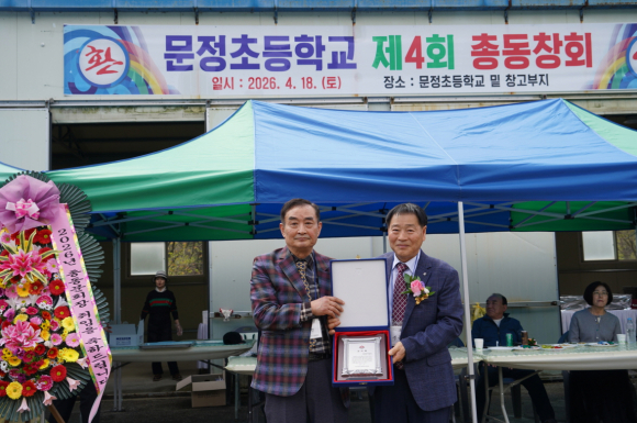고향은 문정초등학교 동문 여러분이 잘 가꾸고 있습니다”라면서