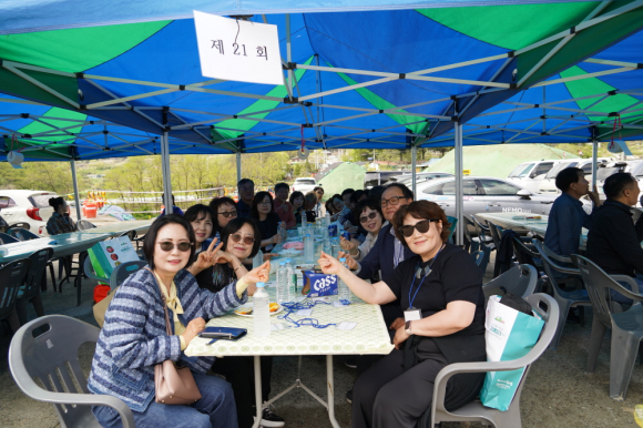 오늘 아침에 비가 내렸는데 동문 여러분의 열정에 감복하여 화창한 날씨로