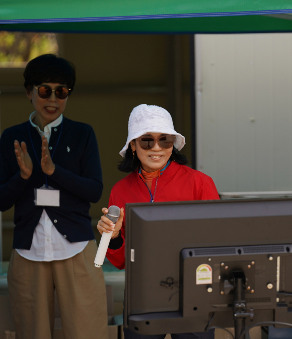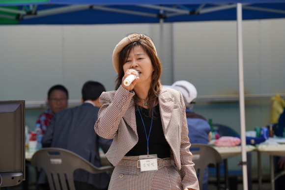 우리 동문 여러분 헌신하신 이분들에게 큰 박수로 답례 합시다”라고 하면서