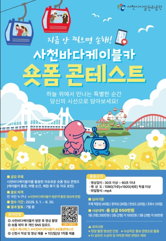 2026년 사천바다케이블카 숏폼 콘테스트 개최